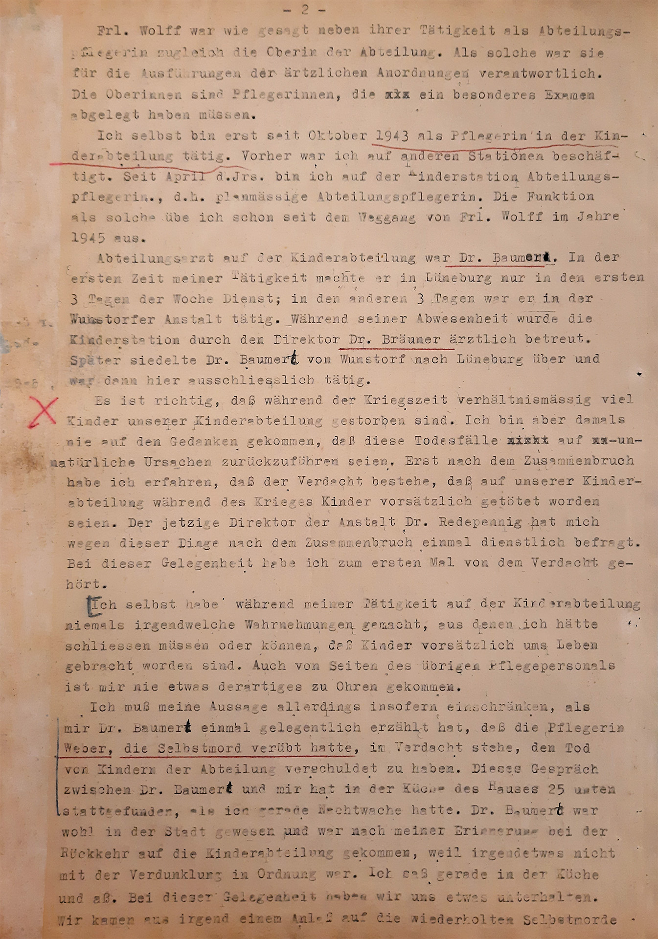 Już w październiku 1945 r. prawnik Hans Bolenius wniósł oskarżenie przeciwko Maxowi Bräunerowi i Willemu Baumertowi. Bolenius podejrzewał obu o zamordowanie dzieci w sanatorium i domu opieki w Lüneburgu. Wśród nich był Ulf Quadfasel, syn jego żony Margret. Dochodzenie prokuratorskie zostało wszczęte dopiero w 1948 roku.
