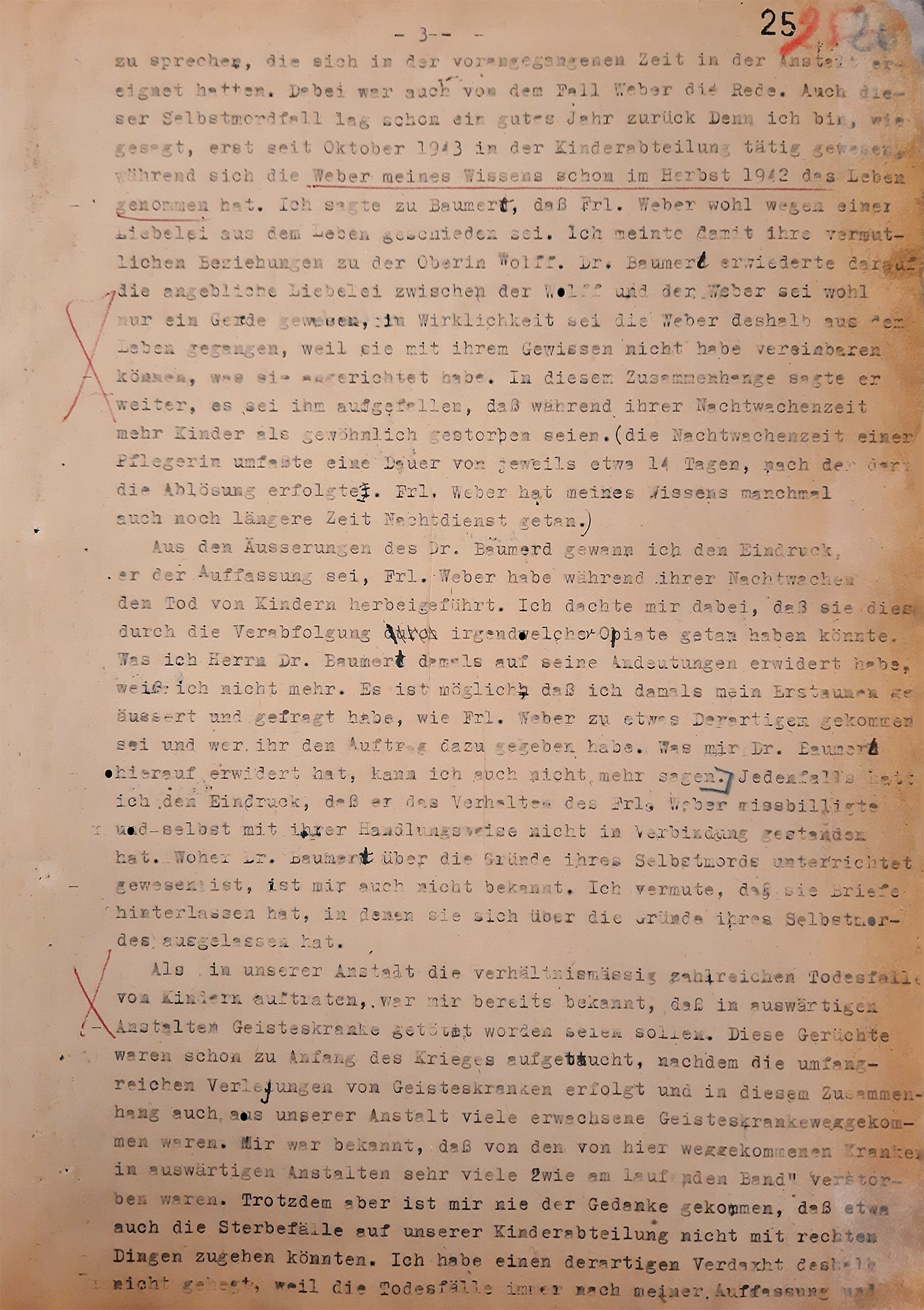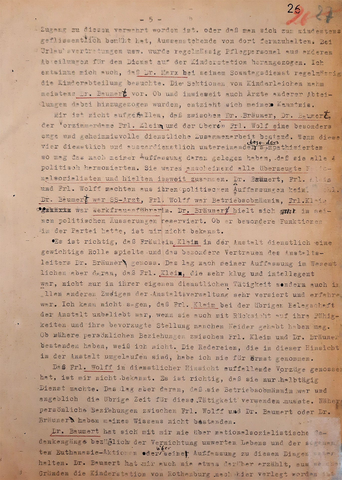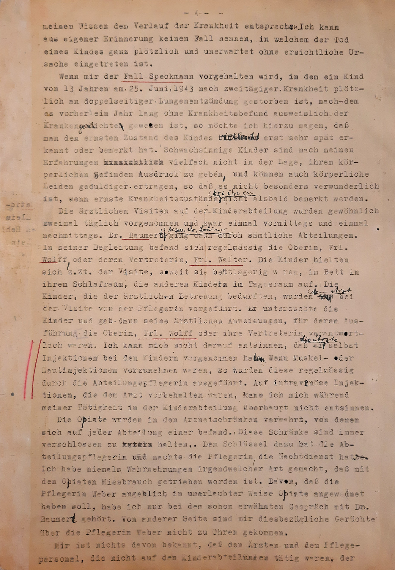 »Chciałbym dzisiaj powiedzieć, że te dzieci nie wiedziały, po co żyją. Uważam, że te dzieci były umysłowo poniżej poziomu zwierząt. […] Kiedy pytano mnie, jak się czułem, gdy dr Bräuner powiedział mi, jakie będzie moje zadanie, muszę powiedzieć, że jestem człowiekiem, który wszystko połyka i nie potrafi nic powiedzieć. […] Nie odważyłem się też nie zastosować się do poleceń lekarzy po otrzymaniu instrukcji […]. […] Nie robiłem tego chętnie […]. […] Nie jestem osobą, która odważyłaby się sprzeciwić przełożonym. Nie potrafię tego zrobić. Nie potrafię tego zrobić nawet w stosunku do mojego brata.«